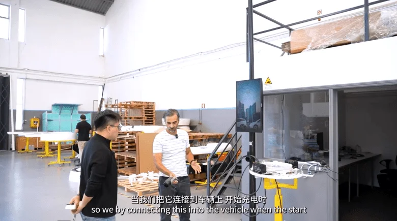 Ruão also showed us a smaller version of the system. It uses the same kind of status indicator and adds voice prompts that can announce when charging begins. He says that function can also be used in other settings, including smart bus stops, where the system could estimate how many people are waiting and provide spoken updates on the next bus. The company is also exploring drone-related applications, including charging.