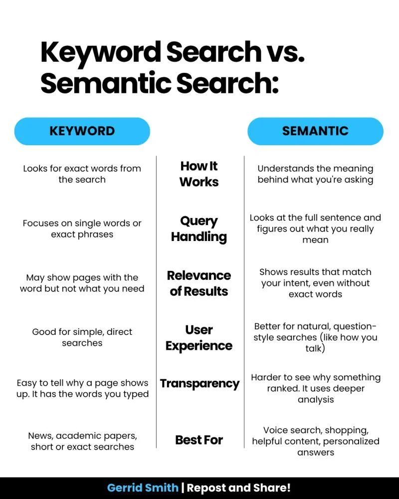Content you have, but described in words the user doesn’t use (e.g., “Sofa” vs “Couch”). - Format gaps