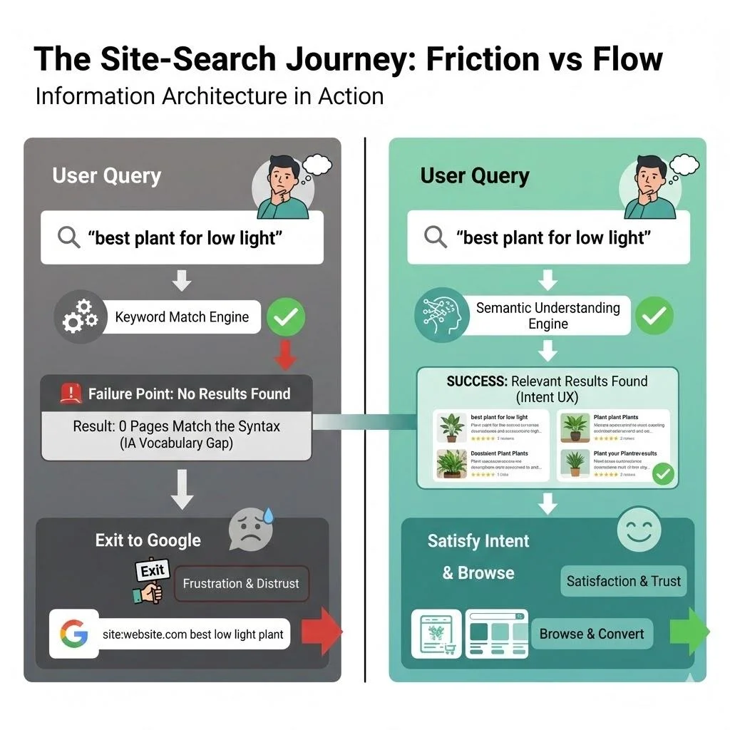This is the Site-Search Paradox. In an era where we have more data and better tools than ever, our internal search experiences are often so poor that users prefer to use a trillion-dollar global search engine to find a single page on a local site. As Information Architects and UX designers, we have to ask, why does the “Big Box” win, and how can we take our users back?