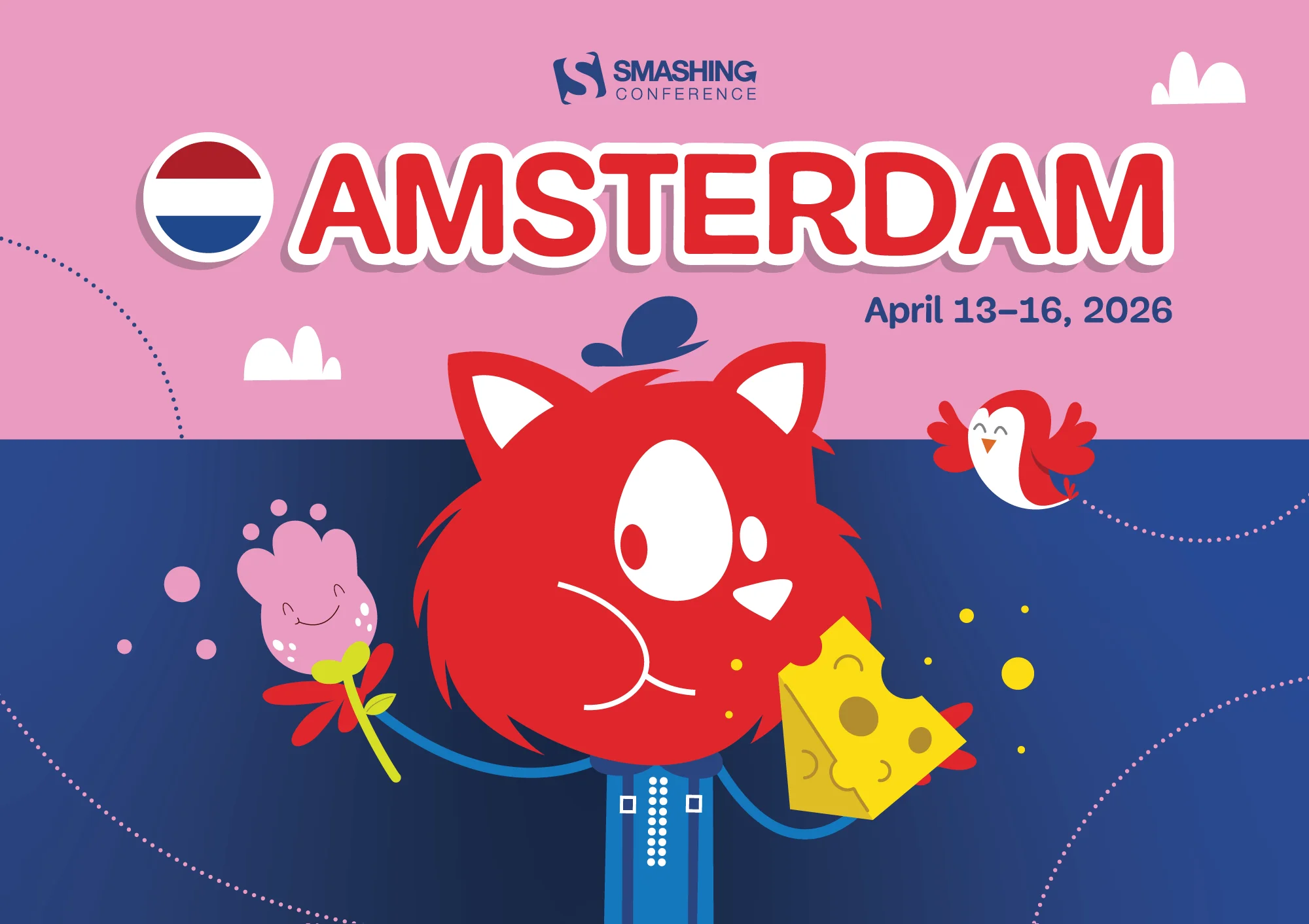 Meet the first SmashingConf Amsterdam 🇳🇱 taking place on April 13–16, 2026! A conference for designers and UI engineers all around UX and front-end: design systems, accessibility, Figma, UX writing, modern CSS and AI.. all while enjoying the best views, fun and gezelligheid that Amsterdam has to offer!