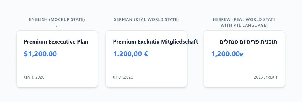 Beyond text length, localization means changes with currency symbols, date formatting, and numeric systems. Any of these variables can significantly impact a page layout. If a design is built to be “pixel-perfect” based on a specific string of text, it is inherently fragile. A pixel-perfect layout completely collapses the moment content changes.
