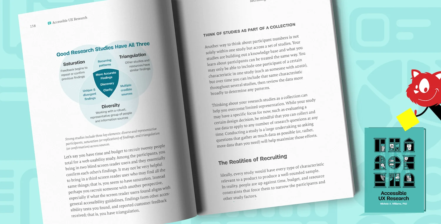 “Accessible UX Research” shares successful strategies that’ll help you recruit the participants you need for the study you’re designing. (Large preview)